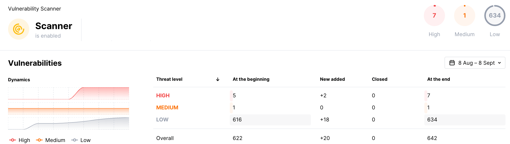 Changes in the number of vulnerabilities of all risk levels for the selected period
