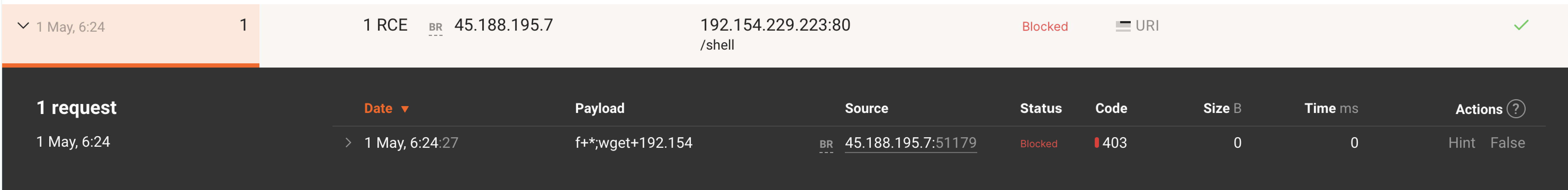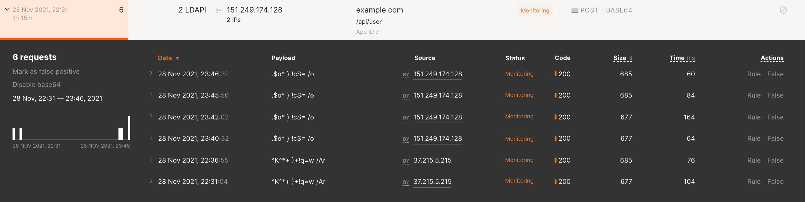 If all the requests in the attack are marked as false positives, then the information about that attack will look like this: