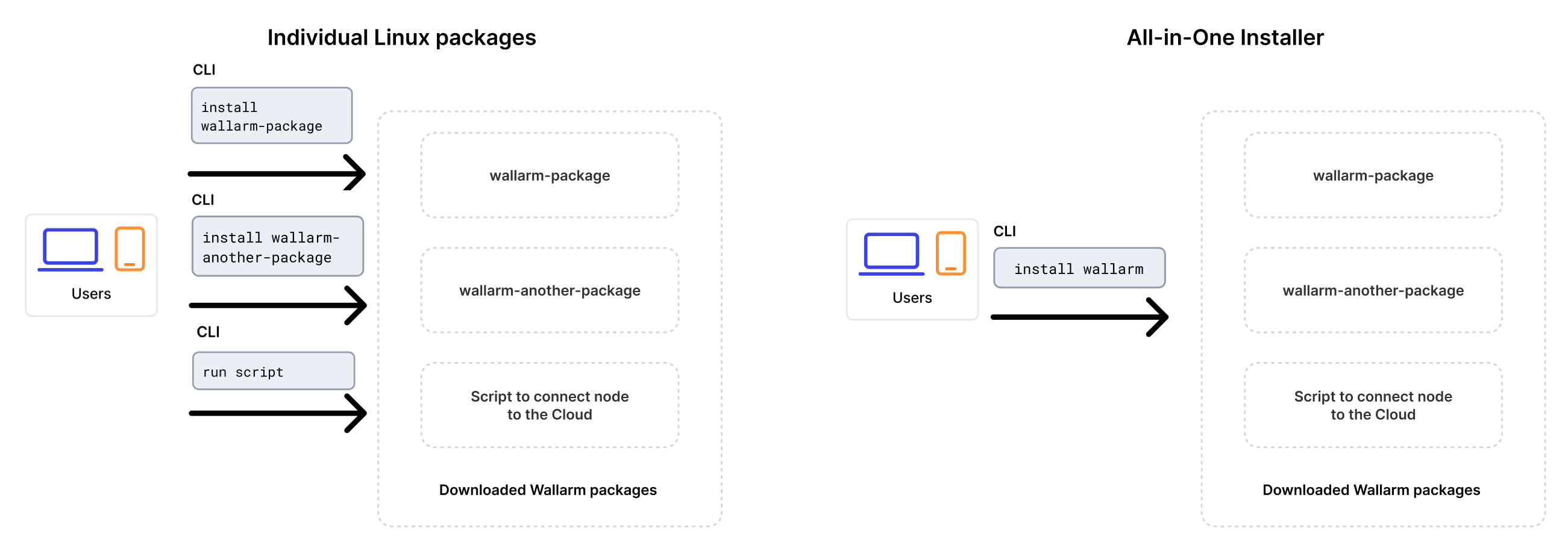 Since version 4.10, upgrading is performed using Wallarm's all-in-one installer. This improves and simplifies the upgrade process in comparison to the upgrade with individual Linux packages offered by Wallarm previously. The installer automatically performs the following actions: