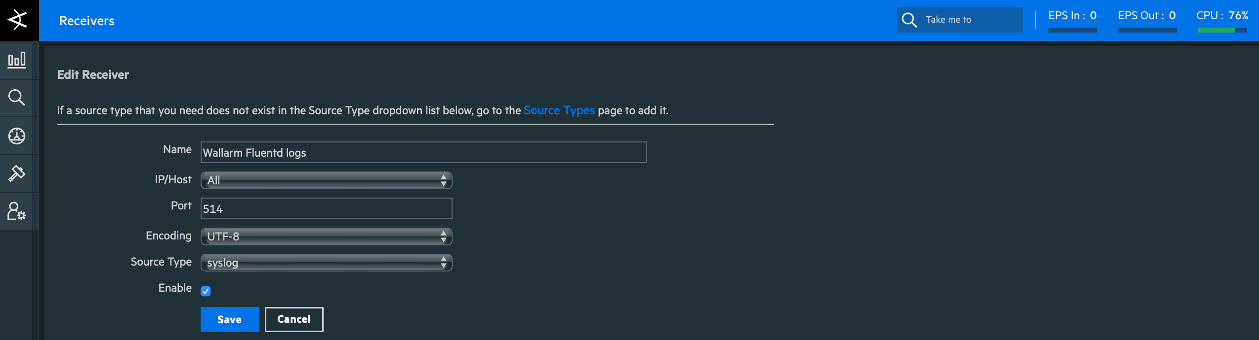 ArcSight Logger has logs receiver Wallarm Fluentd logs