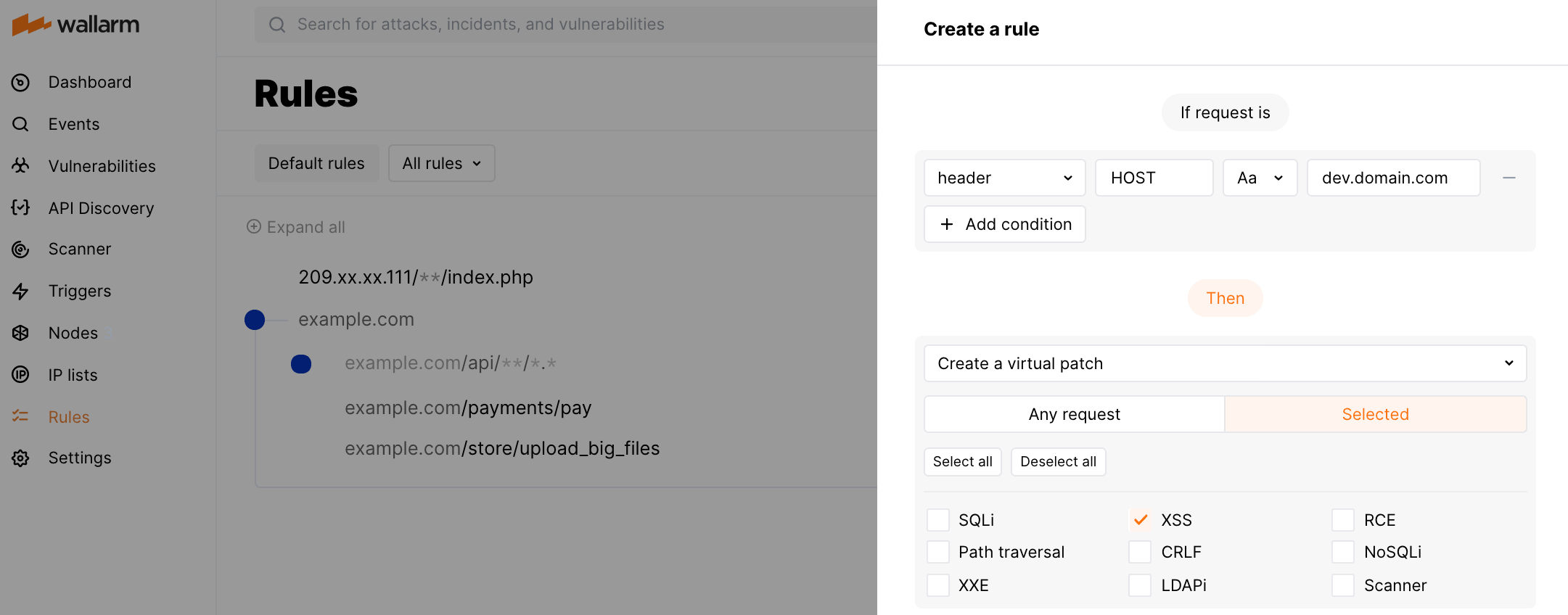 annotation for Kubernetes NGINX Ingress controller deployments. Now, when creating a new filter node rule it is possible to specify that the rule will be assigned to a set of specific application IDs. Without the attribute, a new rule will be automatically applied to all protected resources in a Wallarm account.